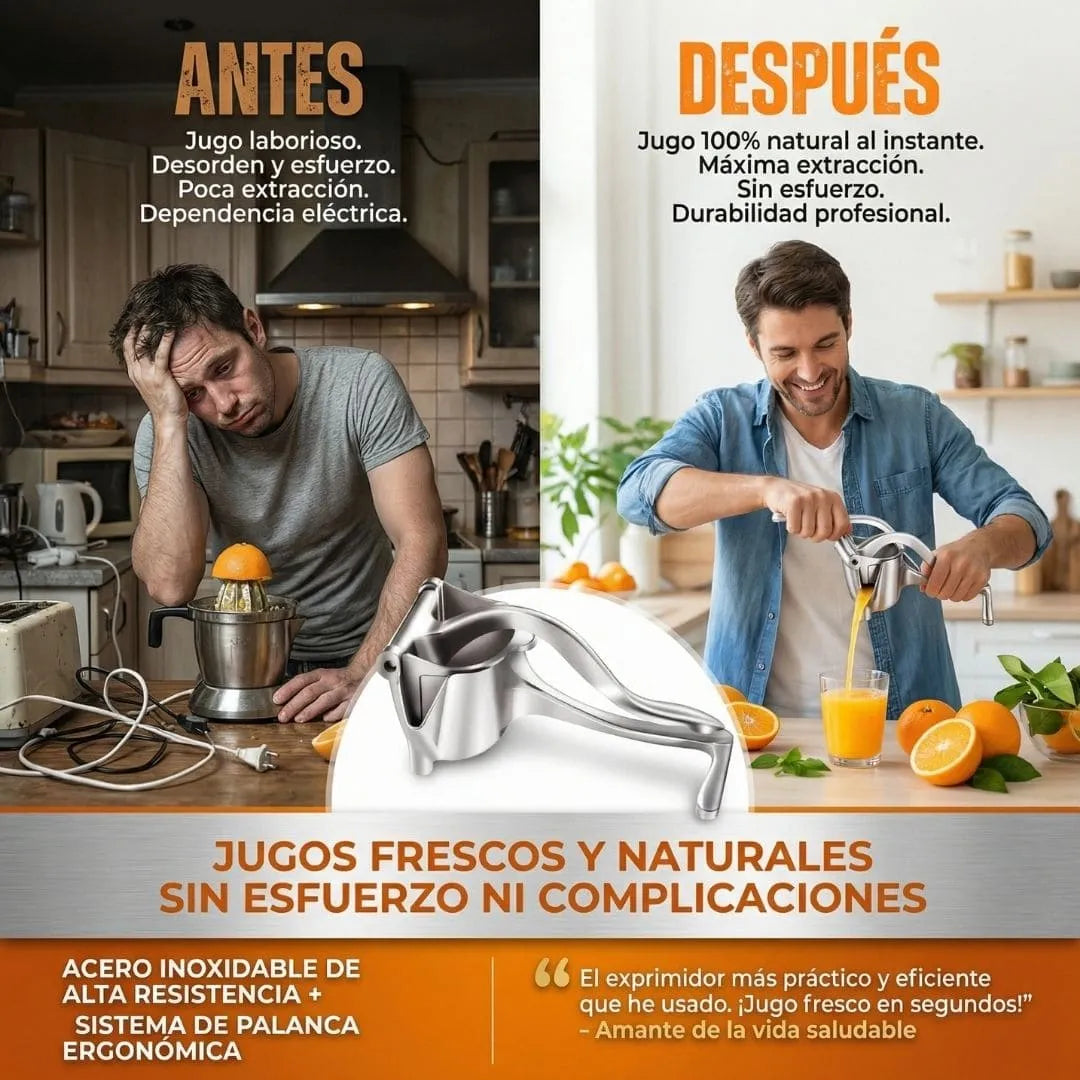 Su diseño ergonómico y su estructura de alta resistencia permiten exprimir cítricos con mayor presión y menor esfuerzo.